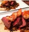 Sauce carefully. I like to lay a base of sauce on the plate and build on top of it. Too much sauce on top of the food detracts from the hero effect. Putting the sauce underneath also placates the advocates of “sauce on the side”.