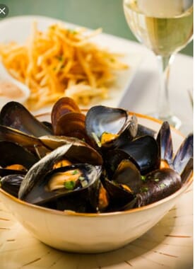 Using one mussel as a tweezer to eat mussels is not something we grew up with. My buddy Lucien who grew up in the south of France is the one that taught us this one. If you ever go to Paris you have try moules frites. Chez Leon along the Champs -Elysees is a great experience. While moules frites is originally from Brussels, the French do a great job. You can get your moules 10 to 20 different ways. No choice is bad.